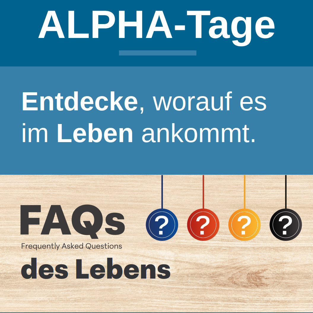 Hast du Fragen an das Leben? An Gott? An den Glauben? Dann laden wir dich herzlich zu unseren ALPHA-Tagen ein: